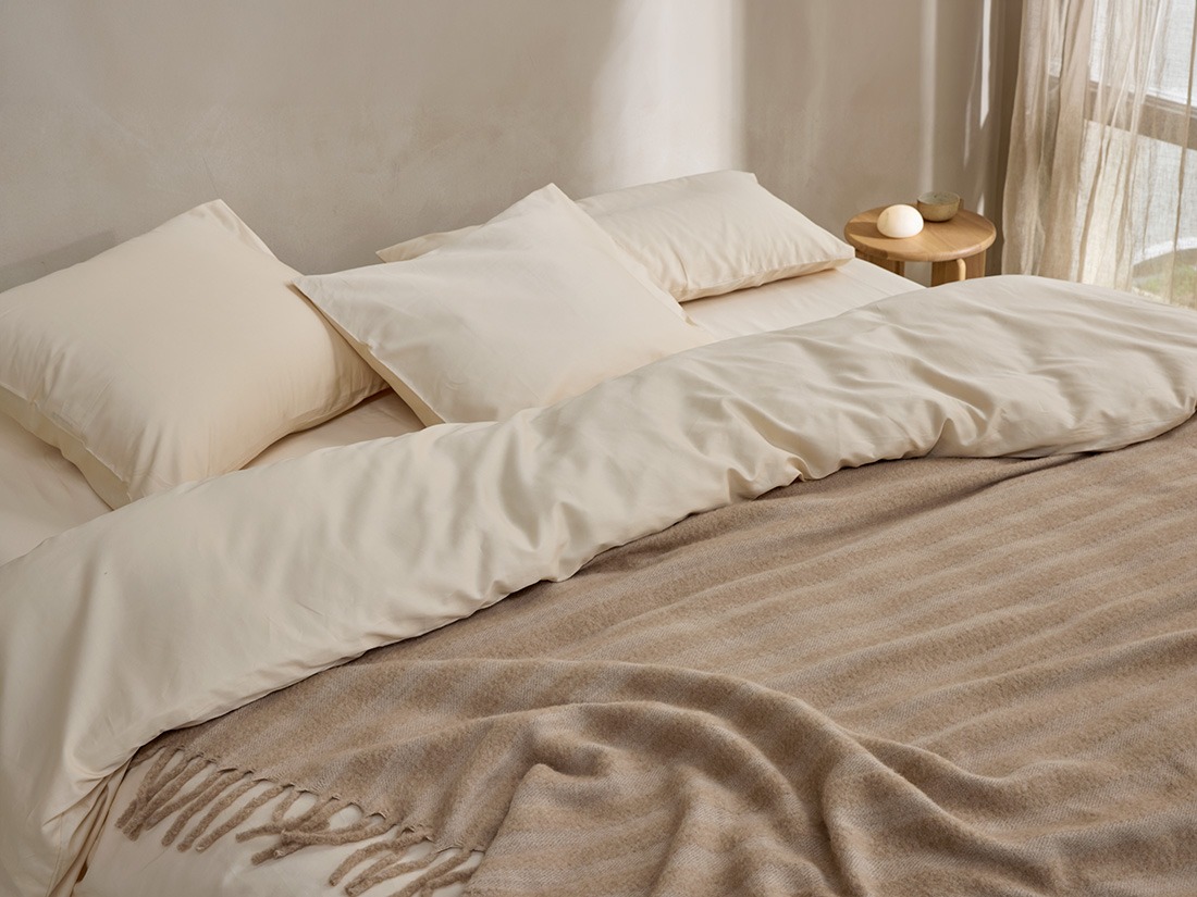 De wolvezels van alpaca’s zijn van nature ultrafijn en hebben een gesloten, gladde structuur. Daardoor voelt de stof zacht aan op de huid, zonder te prikken of te irriteren. In tegenstelling tot gewone wol bevat alpacawol geen lanoline (wolvet), waardoor het ook geschikt is voor de zeer gevoelige huid. En omdat alpaca’s leven op grote hoogte in de Andes, waar de temperatuur sterk schommelt, is hun vacht uitzonderlijk goed in het reguleren van warmte. Licht, luchtig en toch heerlijk warm, een deken om in weg te dromen.