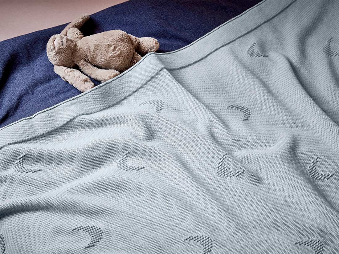 Voor je kind wil je natuurlijk alleen het allerbeste, dus kies je zorgvuldig uit wat comfort biedt. Met deze soepele kinderdeken, liefdevol gemaakt van zacht, biologisch katoen – volledig vrij van schadelijke stoffen – maak je een bewuste keuze. De gebreide stof valt heerlijk om je kind heen, biedt warmte en is tegelijkertijd ademend. De effen kleur en het subtiele maanpatroon geven een gevoel van rust en geborgenheid.